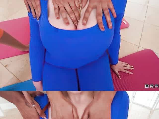 An awesome sideways pose fuck with a busty lesbian Anissa Kate