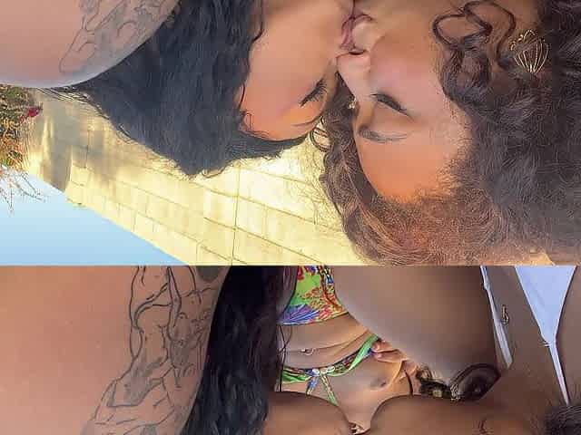 See those large tit lesbo doxies kiss and lick their holes