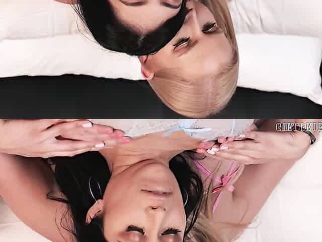 Busty blond and brunette lesbian porn