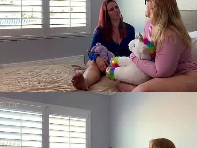 Curvy nymph lesbian pussylicking stepmom in erotic couple