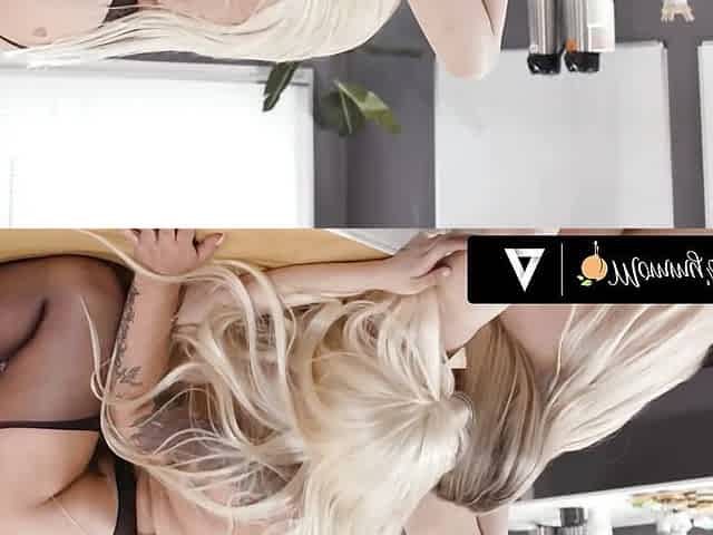 Curvy lesbian goddesses make out in erotic kitchen kinks