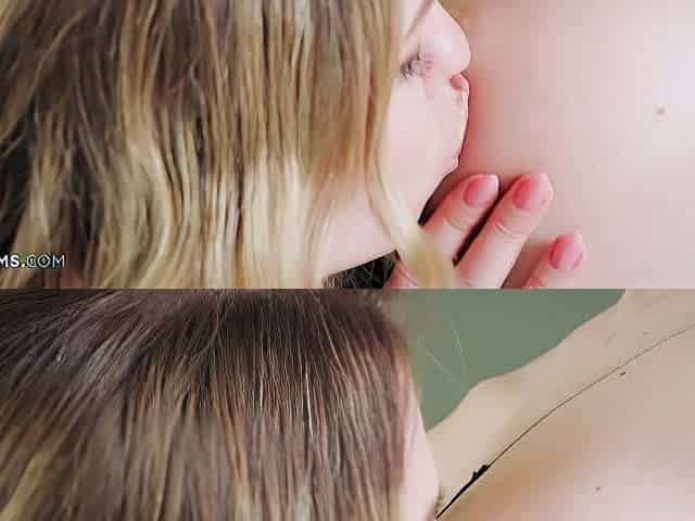 Stepmom and stepdaughter kissing and sucking each others breasts