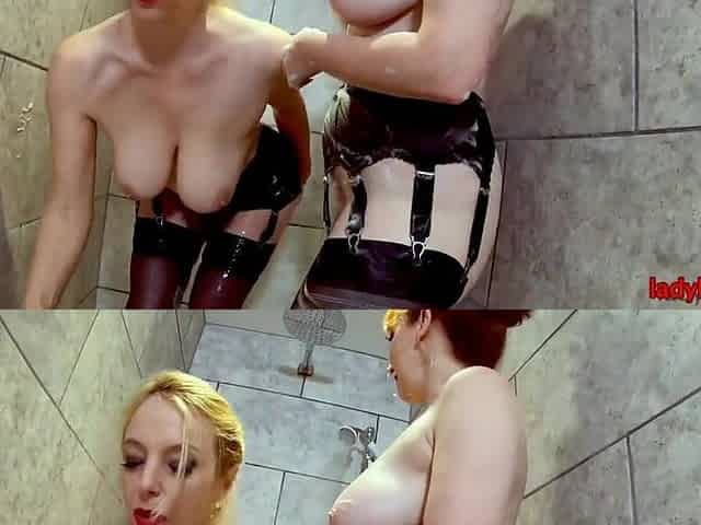 Two Curvy Lesbian Girls Washing Bodies For Dominant Madame