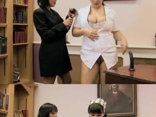 Two schoolgirls lick and fuck two big lesbian teachers at