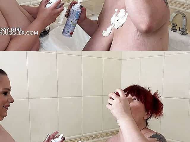 Ssbbw gals apply powder to each other requested