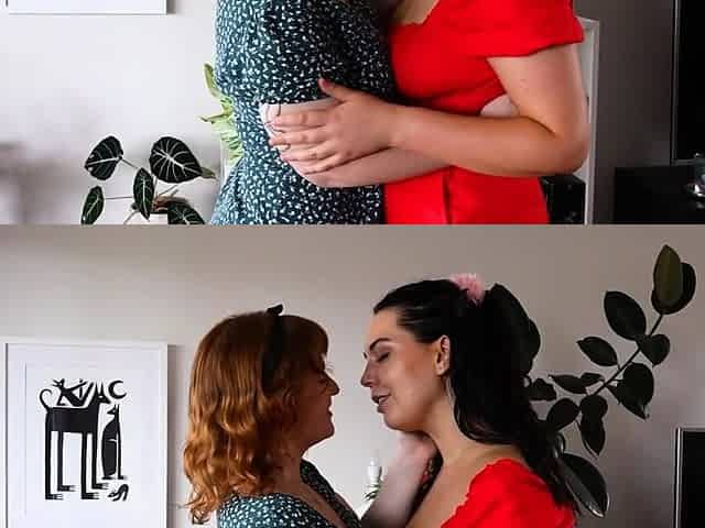 BBW lesbian stepdaughter pulls out moms big tits