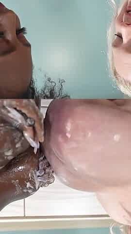 Interracial Soapy Lesbian Shower Fuck Session