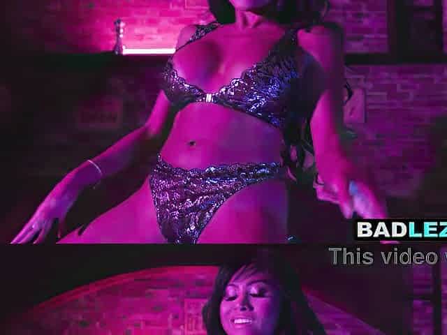 Breasty lesbo golden-haired stripper seduces and bangs a large melons curvy Oriental mother I'd like to fuck