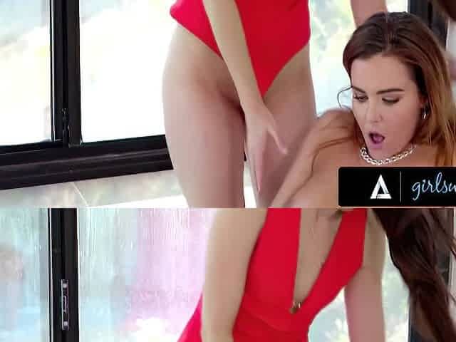 The Red Dress Strip With Karola And Rose; Huge Tits BBW with Lesbian Foreplay
