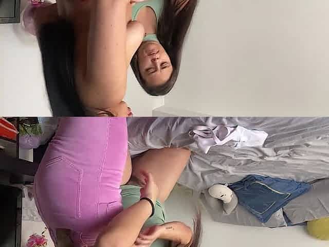 Lesbo stepsisters doing scissors to practice