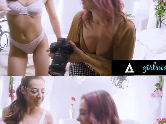 Rachel Starr has her first photo shoot and gets licked by a pretty girl