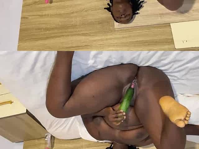 Huge Cucumber Solo Fuck and Masturbation by a Thick Nigerian Ebony Lesbian
