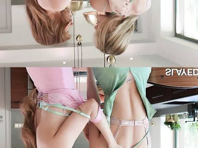 Busty blond and brunette lesbian porn