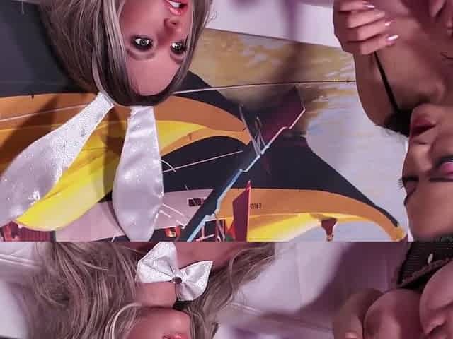 StrapOn Lesbian with big boobs fucks her blonde sexy GF