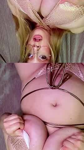 BBW blonde Amanda Remington nicely plays with her pink dildo