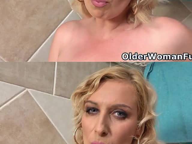 Voluptuous blonde MILF enjoys solo playtime with her sex toys