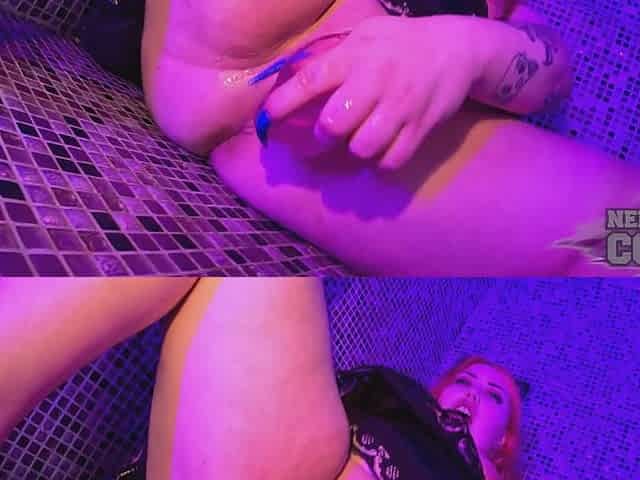 Pastel Bat Bbw Model Lubing Up And Banging Herself Out With A Huge Pink Dildo In The Sauna