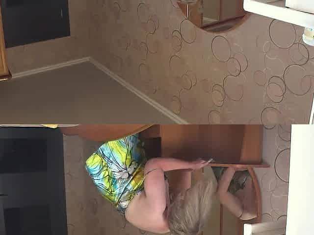 Neighbor watches chubby milf through open window. PAWG.