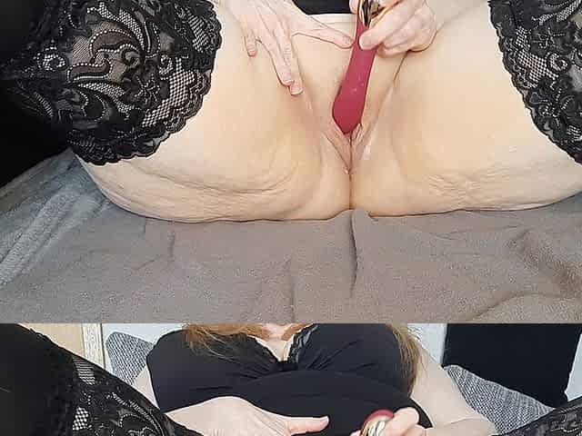 Missy in black stockings, solo pleasure with a toy.