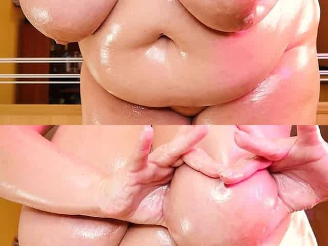 Playing with Oil Over My Naked Breasts and Pussy
