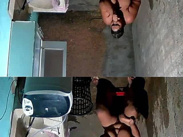 Camera Records Stepmother Taking a Bath and Showing It in the Backyard