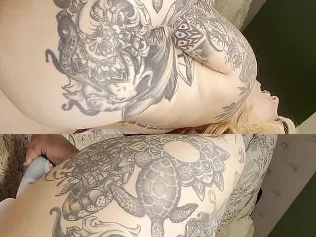 An awesome curly-haired blonde Lady Monroe stimulates her crack