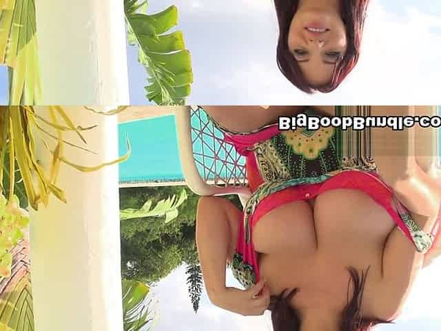 Hot alluring busty babe Bianca Y exposes her bum and goes solo for orgasm