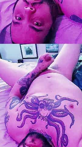 Tattooed Stud Masturbating in Couch