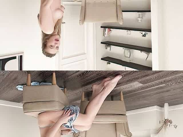 Godlike perfect blonde Emily shows takes off her cute orange panties