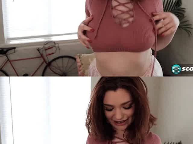 MY18TEENS - Chunky honey teases her bazookas and masturbates