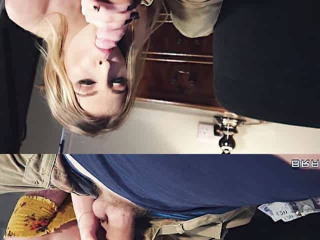 Brown-haired hottie Ashlynn Leigh gives a good blowjob on the knees