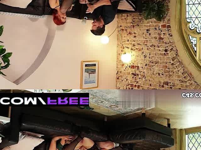 An awesome redhead chick Melody Jordan is jumping on a huge dick
