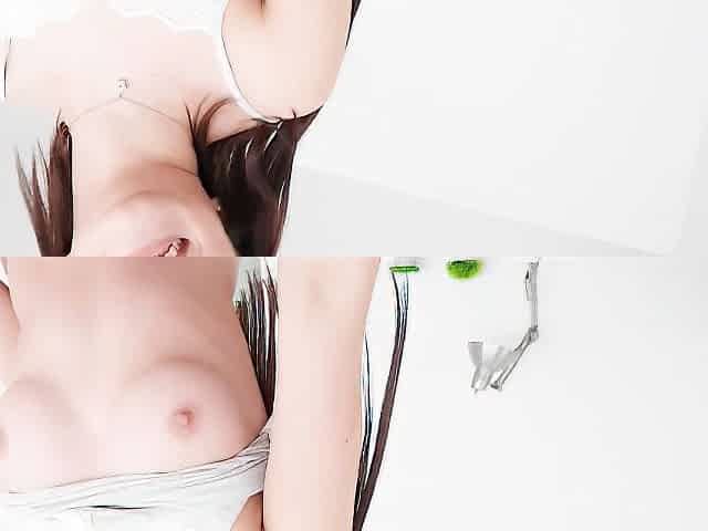 Busty brunette Minah nicely plays with her tight shaved pussy