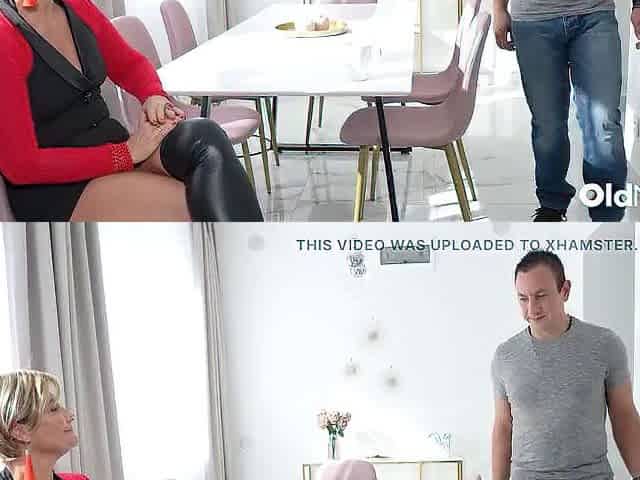 A young man fucks with a horny as hell mature nurse Elle Denay