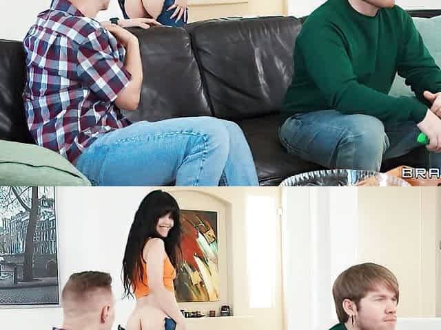 Curvy brunette teen Abella Danger gets her big ass filled to settle boyfriend's debt
