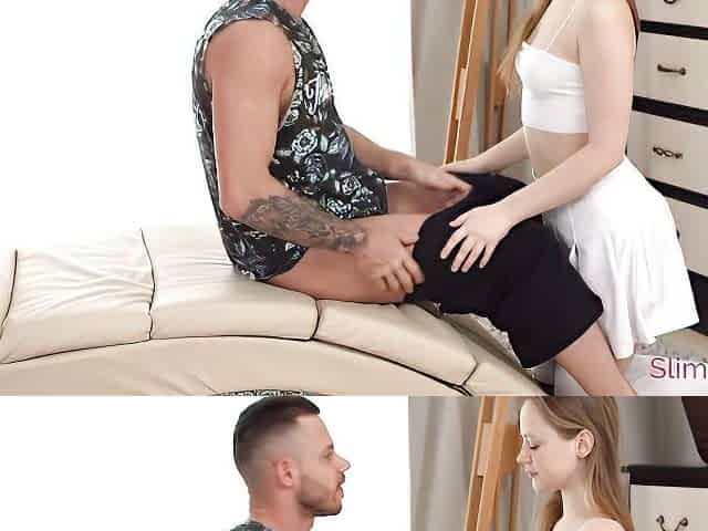 Blowjob for big dick, teeny angel sucking hard for hot face creampie.