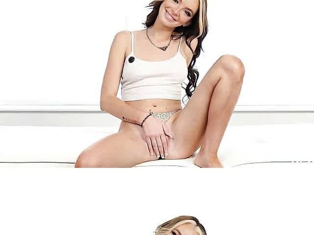 Smiling blonde with hairy pussy Haley Reed needs a long wiener