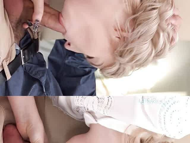 Busty Blonde MILF Sucks Dick and Gets Throat Fucked Vigorously Until She Gets Warm Jizz