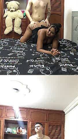 I destroy the cleaning lady's daughter's pussy on all fours in my parents' room