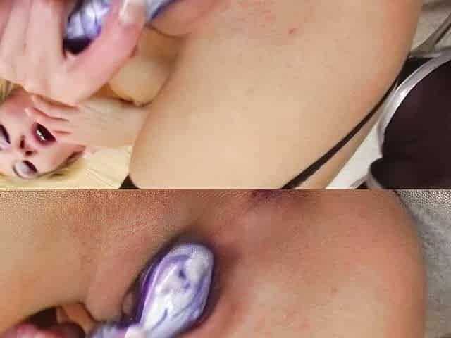 Awesome blonde model Barbie is fucking with a pink sex toy