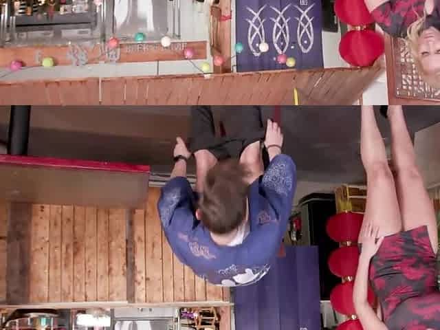 Sofie sugar-plum & Vicky Ménage sharing the male's thick penis at the club until this guy can't take it anymore