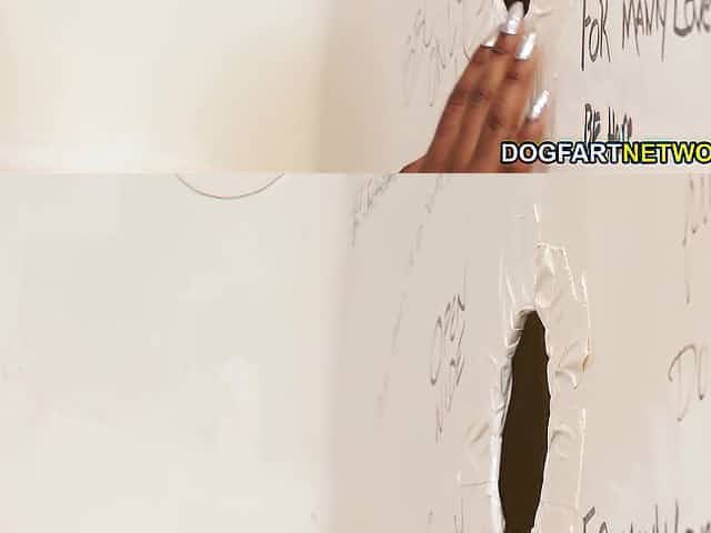 Pink haired ebony babe Daizy Cooper enjoying a gloryhole fun