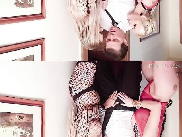 Blonde Girl Secretary With Her Step Mother Threesome Fucking