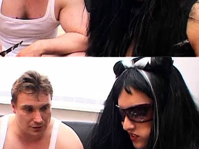 Femdom fetish mistresses fuck bdsm loser with strapon