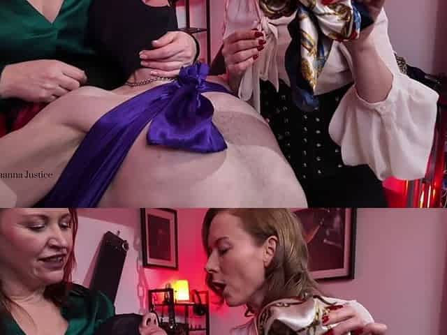 Inanna Justice & Madam M Envelop Sub in Heavy Silk Scarf Bondage - Double Domme Punishment Part 2