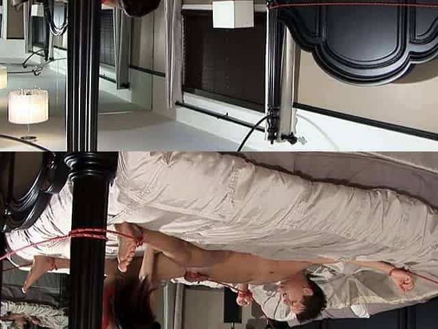 She is naked and tied up, and her body is touched and licked all over, making her feel pleasure.