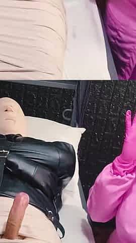 It's Time to Feed Sperm in a Latex Castsuite with a Latex Mask, the Slave Really Enjoyed It!