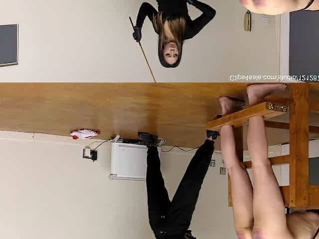 Horny Darkhaired Babe Restrained And Caned