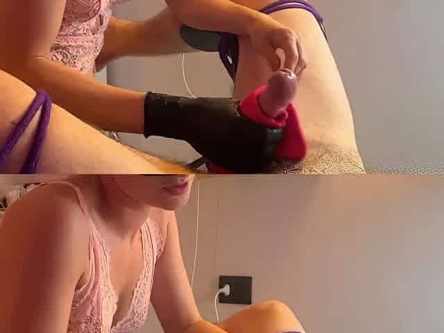 Stockings femdom wanking small cock