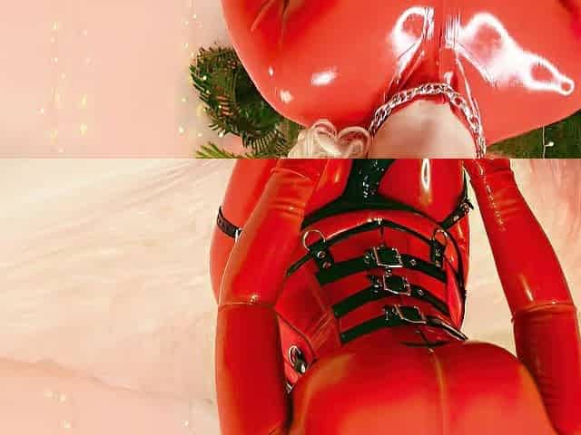 THONG-ON sex of two MILFs - latex PVC slavery and playing with air balloons COMPILATION